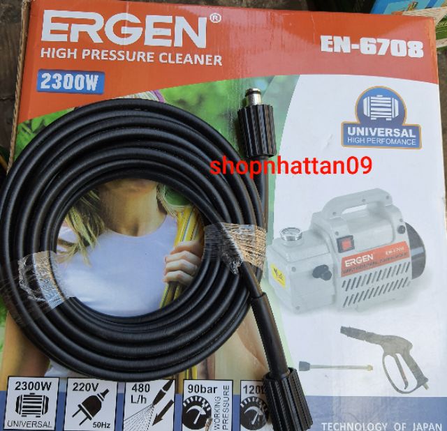 Dây rửa xe 10M 2 đầu ren 22 loại theo máy ERGEN 6708 CHÍNH HÃNG