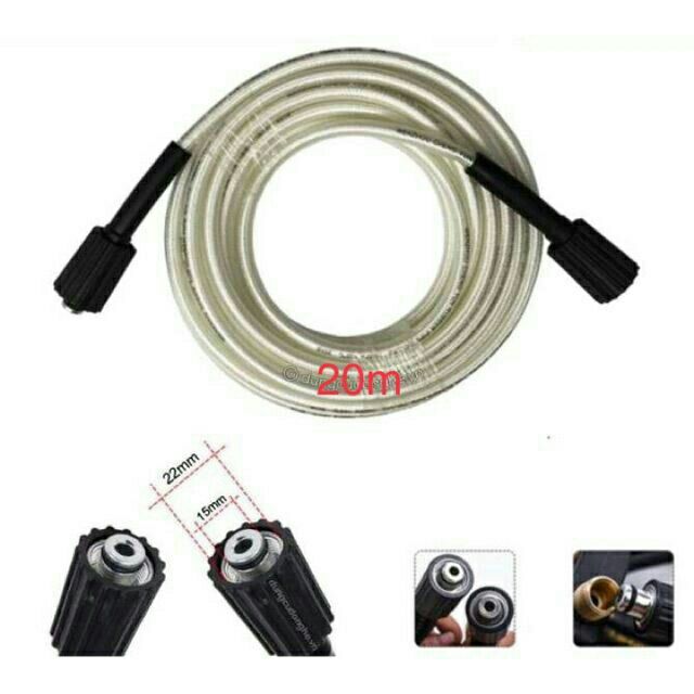 Giới thiệu 20M Dây rửa xe cao áp cho máy xịt rửa áp lực - Ren trong 22mm*Thông tin nổi bật: