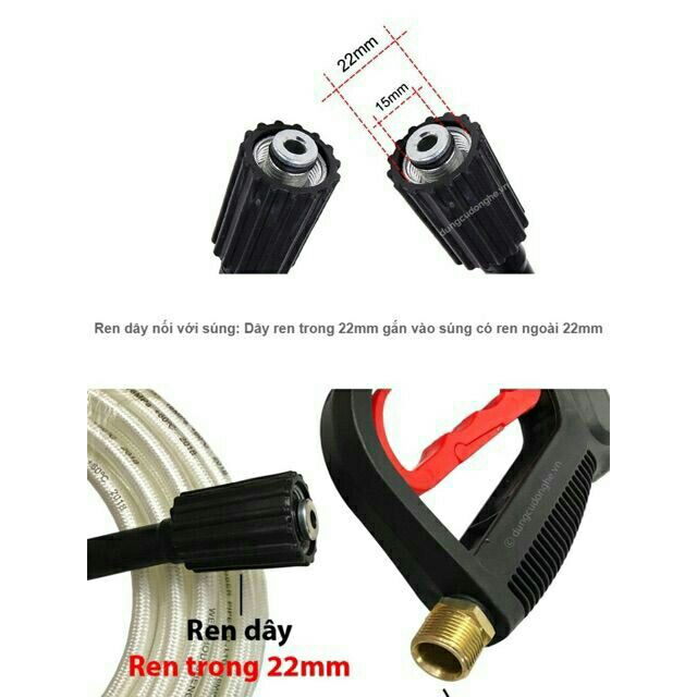 - Các đầu nối với ren vặn dễ dàng thao thác lắp đặt với máy bơm – xịt rửa cao áp