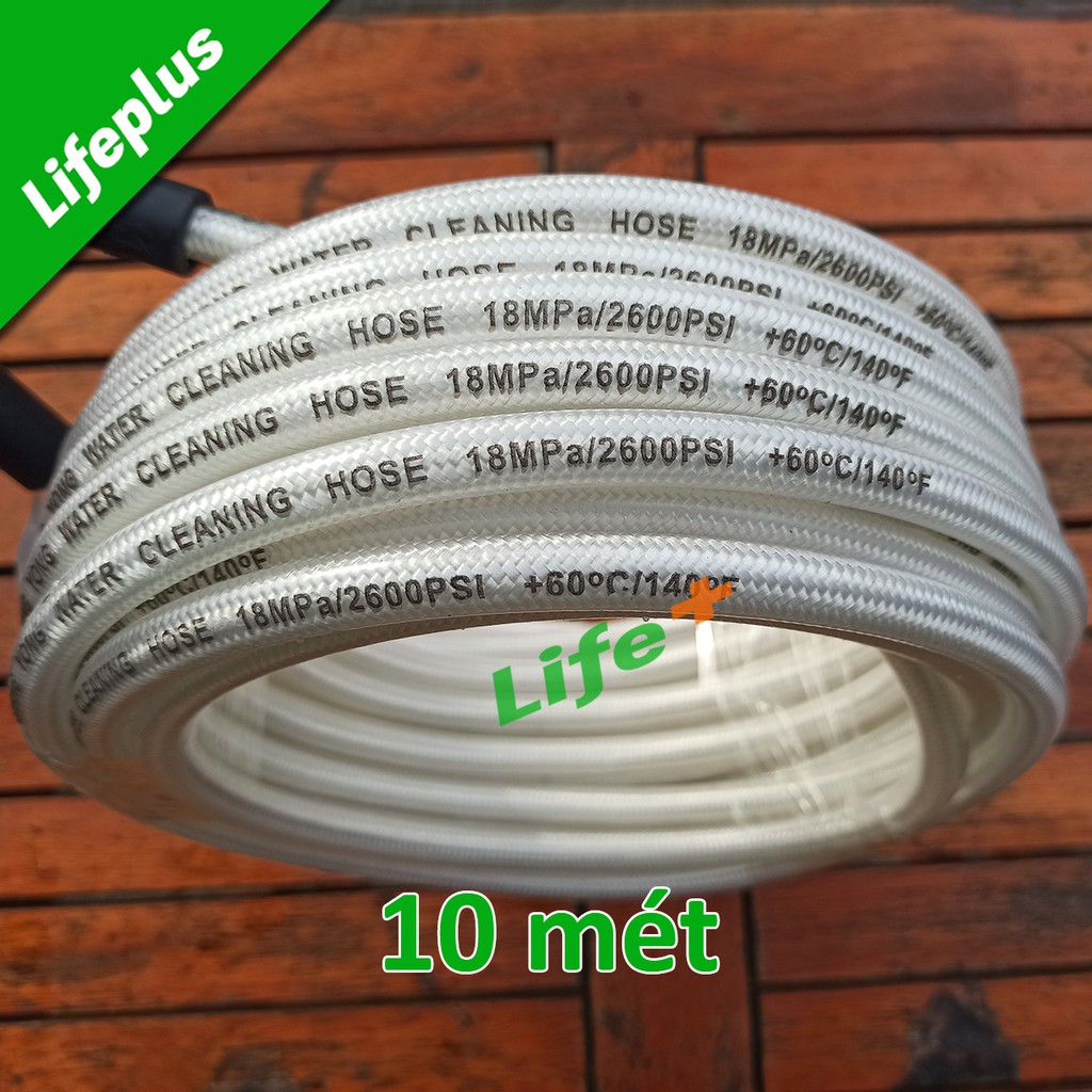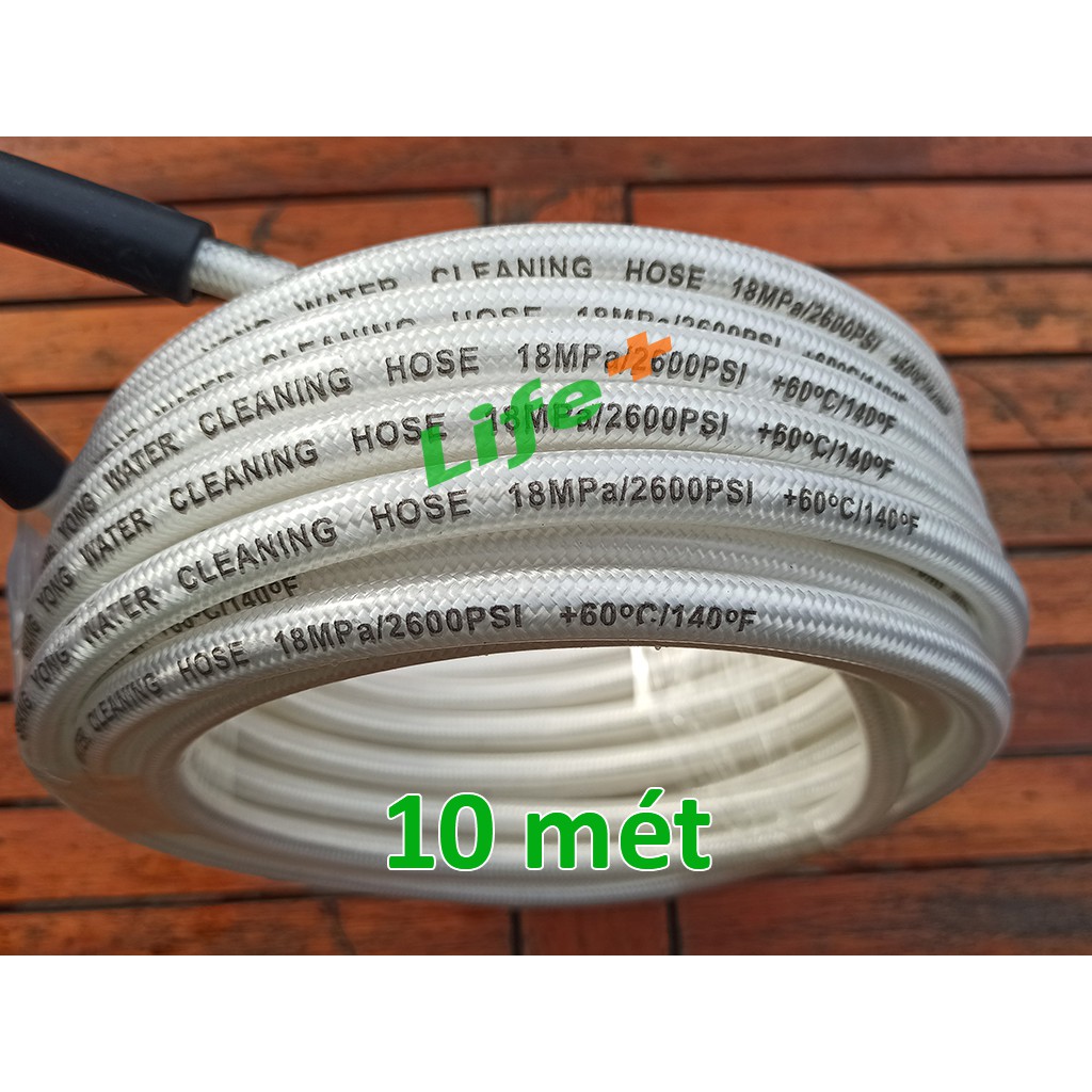 Nhà cửa & Đời sống > Dụng cụ & Thiết bị tiện ích > Dụng cụ > Máy rửa áp lực nước || Dây rửa xe áp lực 18MPa 10m, lõi nhựa bọc dù trắng, hai đầu ren trong to M22Còn hàng