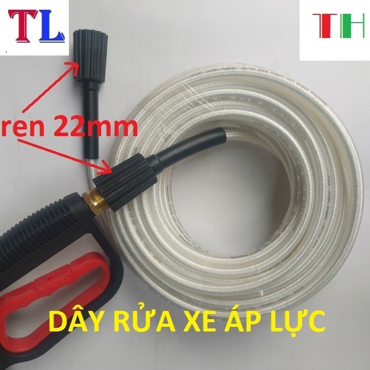10m Ống dây máy rửa xe cho máy bơm xịt mini_ đầu ren trong 22mm,