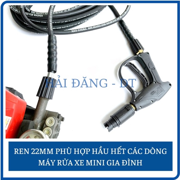 Dây Rửa Xe Bố Thép tưng thích hầu hết với các dòng máy rửa xe có ren ngoài 22mm đang có bán trên thị trường.