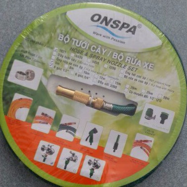 * Bộ vòi rửa xe tưới cây Onspa. Đầu vòi có chức năng điều chỉnh, tăng hoặc giảm lượng nước : dạng tia hoặc dạng xòe. Khi tưới cây xanh, bạn mở vòi ở mức lớn, còn đối với các chậu hoa, cây cảnh, bạn chỉ cần mở van ở mức trung bình hoặc thấp.