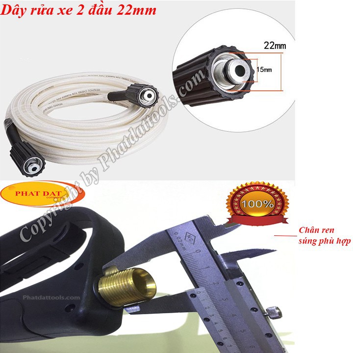 Cuộn dây rửa xe cao áp chuyên dụng lắp cho máy rửa xe cao áp gia đình,máy rửa xe đầu liền.Thông thường,khi mua máy đi kèm cuộn dây cao áp có chiều dài khoảng 8m-10m,trong quá trình sử dụng bị hư hỏng hoặc dây quá ngắn không phù hợp với yêu cầu công việc như xịt rửa sân vườn,rửa xe ở xa nguồn nước,nguồn điện thì việc thay dây hoặc nối dài dây cho máy rửa xe là vô cùng tiện dụng.Cuộn dây rửa xe cao áp với lõi PU dẻo cho độ bền cao,chịu va đập,chịu ma sát cực tốt,chiều dài đủ 10m-15m-20m,đầu kết nối ren 2 kiểu :2 đầu đều ren 22 hoặc 1 đầu ren 22,1 đầu ren 14 phù hợp cho các dòng máy trên thị trường.Được tặng kèm khớp giúp nối dài dây rửa xe cũ với dây rửa xe mới.