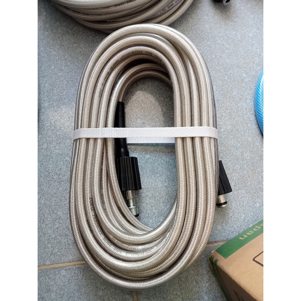 Dây cao áp bố vải dùng cho máy rửa xe đã kèm theo 2 khớp nối dài ren trong 22mmRen trong 22, dùng cho hầu hết các loại máy rửa xe trên thị trường.