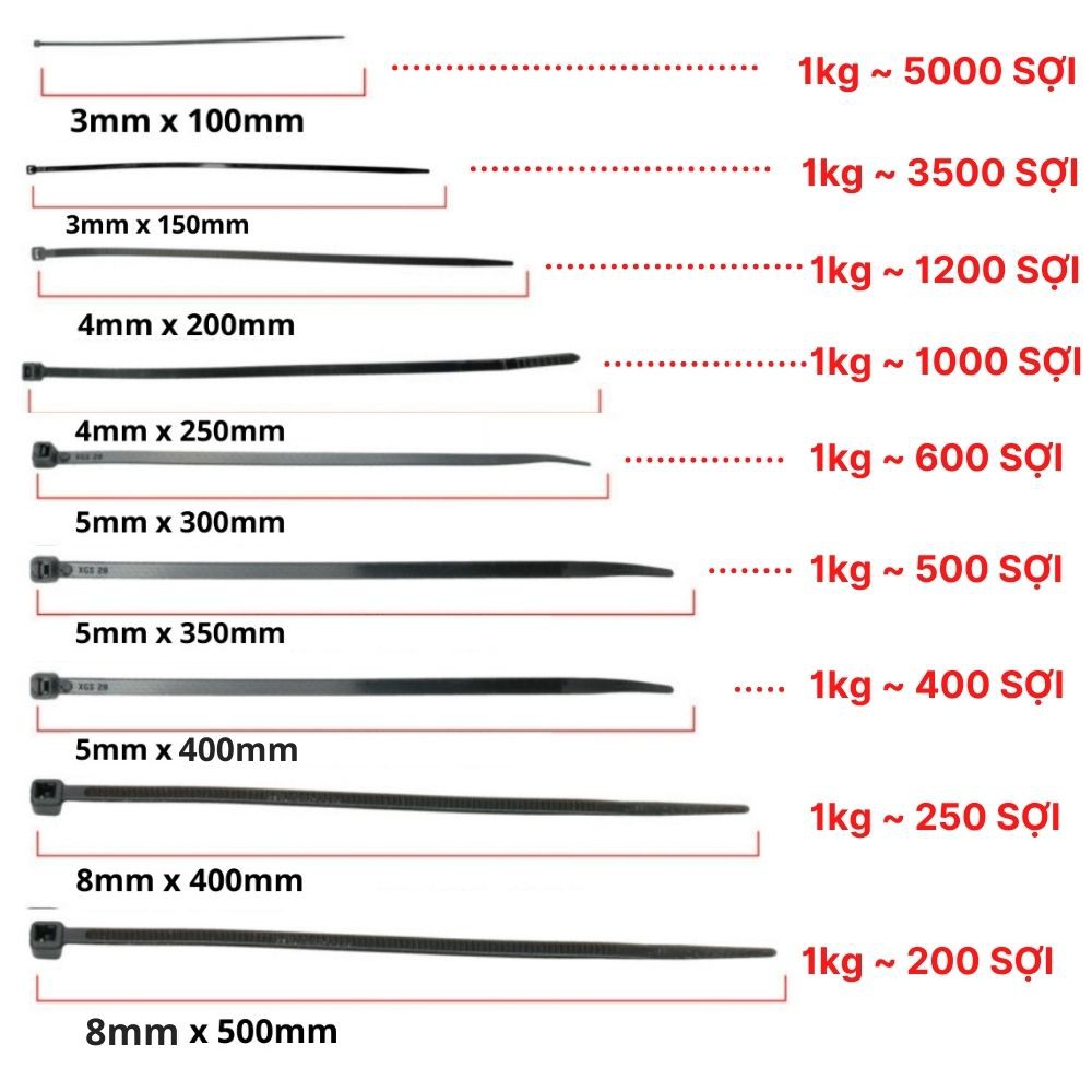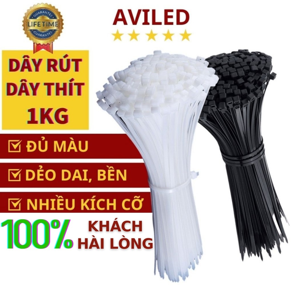 Dây rút nhựa 1kg đen trắng, 1 cân dây thít nhựa 10cm 15cm 20cm 25cm 30cm 40cm 50cm lạt nhựa siêu bền, giá sỉ AVILED