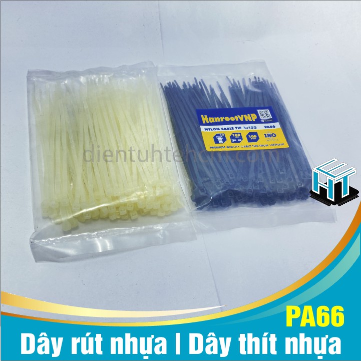 Dây rút làm từ chất liệu nhựa PA66, được sử dụng thay thế các loại dây buộc thông thường để buộc chặt các loại miệng bao bì hàng hóa, bao bì sản xuất. Ưu điểm của loại dây rút hay dây thít nhựa giá rẻ này là khá bền, dẻo, buộc chặt, chắc chắn và an toàn. Sản phẩm nhỏ gọn tiện dụng và có tính thẩm mỹ cao.