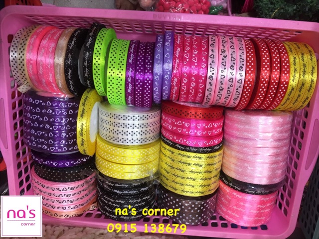 Giới thiệu Dây ruy băng lụa 0.5cm / 0.6cm cuộn 10m màu trơn 5 li