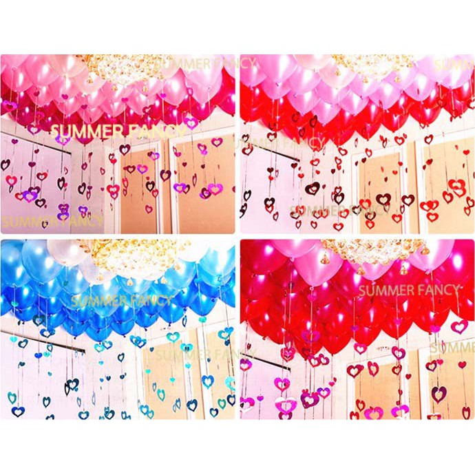 Dây ru băng tim sao treo đuôi bóng gồm:- có khoảng 75 -100 hình tim/ sao gồm cả 2 loại lớn + nhỏ/ bịch