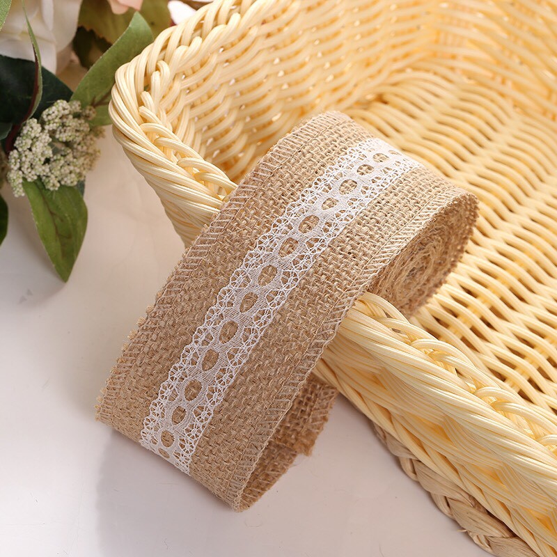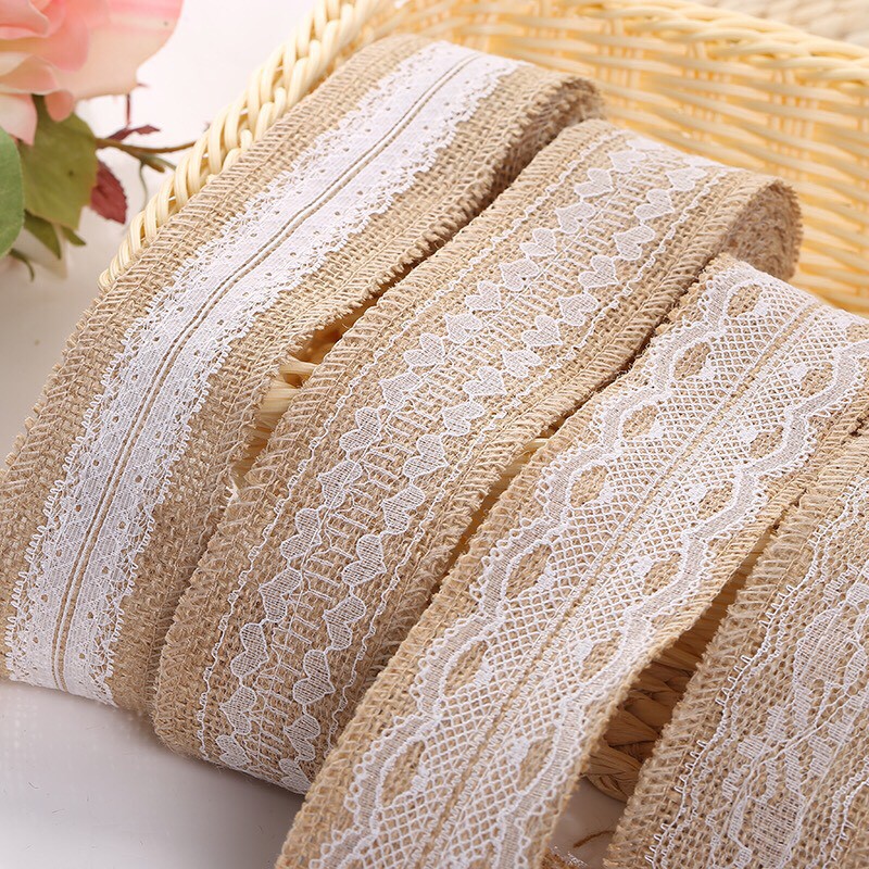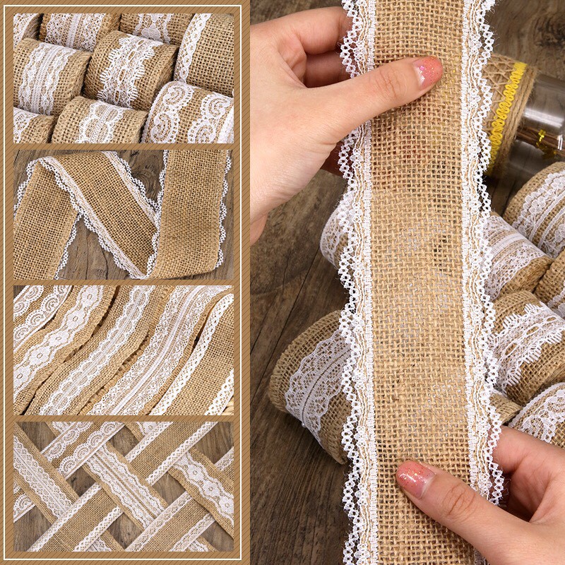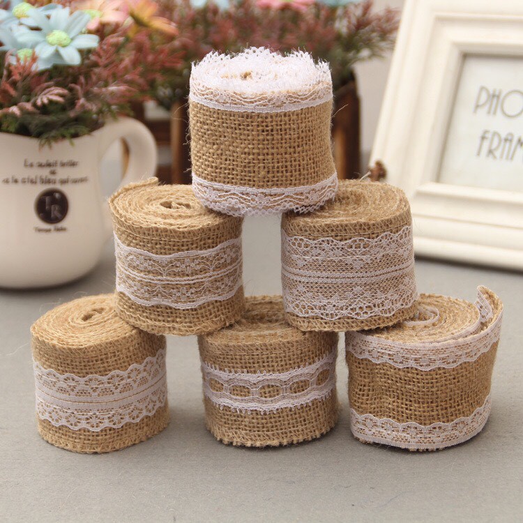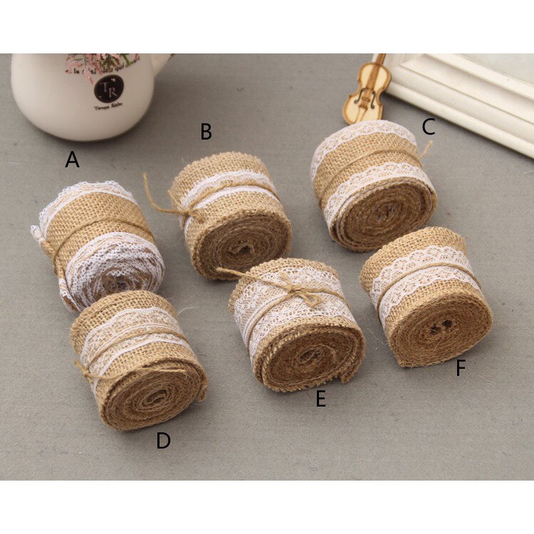 - dây ruy băng vải bố phối ren thích hợp cho việc trang trí lọ hoa, làm đồ hanmade, trang trí tiệc cưới, giáng sinh, sinh nhật.