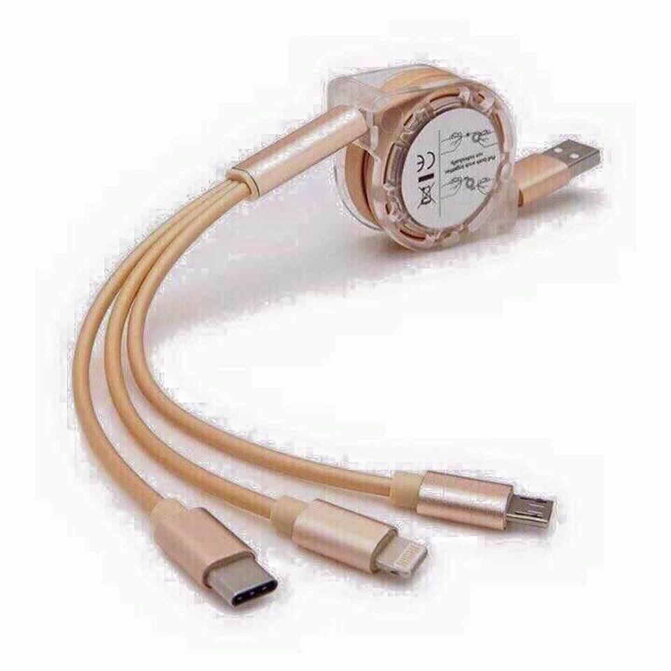 Dây sạc 3 đầu rút cao cấp