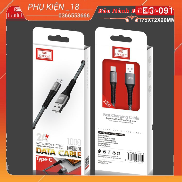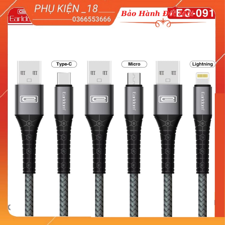 DÂY SẠC BỌC SỢI ĐẦU RA LIGHTING/TYPE-C/MICRO EARLDOM EC-091