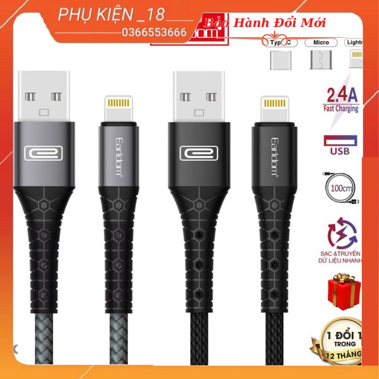 Thiết Bị Âm Thanh > Micro thu âm || DÂY SẠC BỌC SỢI ĐẦU RA LIGHTING/TYPE-C/MICRO EARLDOM EC-091Còn hàng
