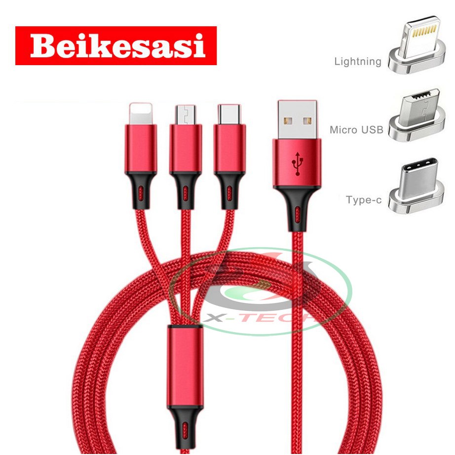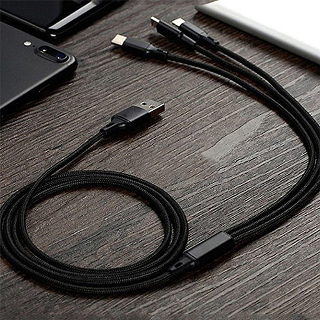 Điện Thoại & Phụ Kiện > Phụ kiện > Cáp, sạc & bộ chuyển đổi > Cáp & Bộ chuyển đổi di động || Dây Sạc Cáp Sạc Nhanh 2.4A 3 IN 1 Dài 1.2M Đầu Micro Lightninng Type-C cho Samsung Xiaomi Oppo Huawei Redmi BH 12 thángCòn hàng