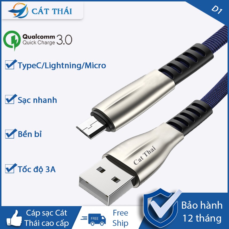 Dây Sạc Cáp Sạc Nhanh cáp sạc nhựa D1 3A tương thích các dòng điện thoại