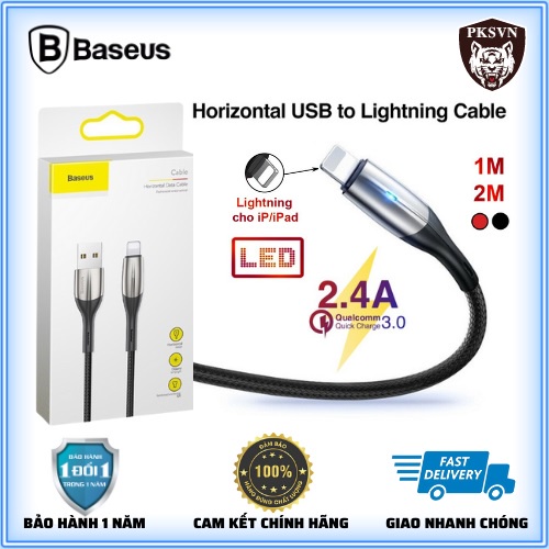 ✪ Tính năng cơ bản Cáp sạc và truyền dữ liệu tốc độ cao Baseus Horizontal Data Lightning cho iPhone/ iPad ( 2.4A, Indicator Lamp, Fast Charing)