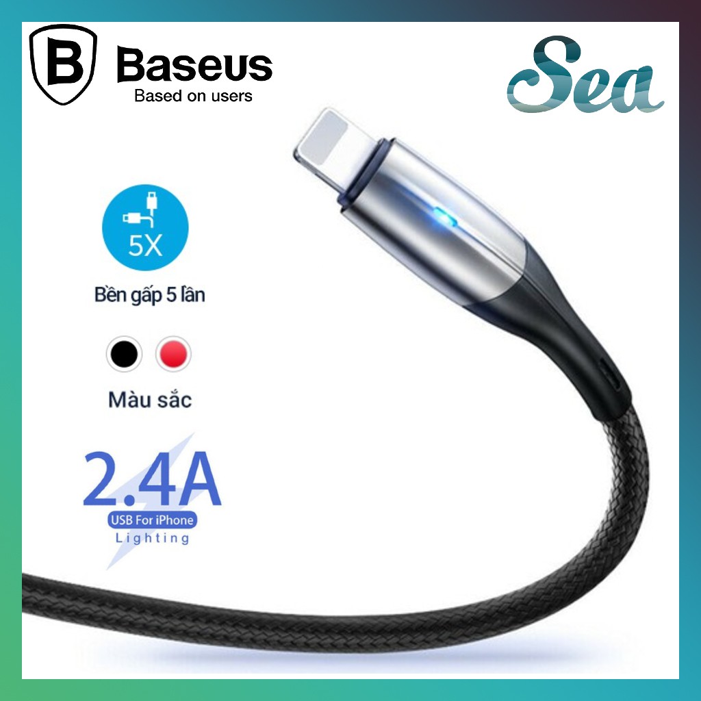 Dây sạc iPhone - Cáp Lightning hỗ trợ sạc nhanh - Siêu bền - Chống gẫy - Đèn LED - Bảo hành chính hãng Baseus