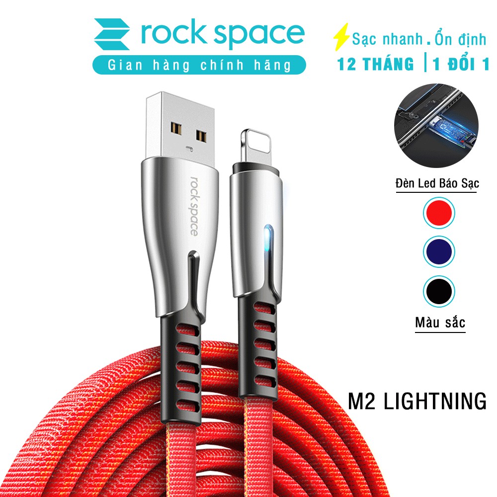 Dây sạc iphone chính hãng Rockspace M2 chuẩn lightning sạc nhanh ổn định có đèn led bảo hành 1 năm