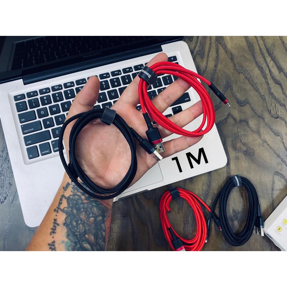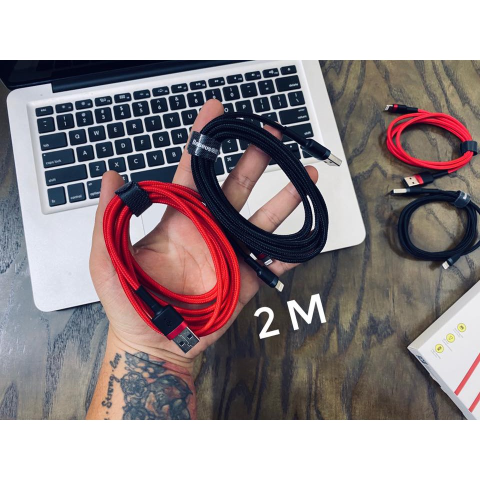 - Cáp Sạc Nhanh Siêu Bền Baseus Cafule Lightning có 2 kích thước chiều dài để cho các bạn dễ chọn lựa 1M và 2M tương ứng với dòng sạc như sau 1M – 2.4A Max, 2M -1.5A Max.
