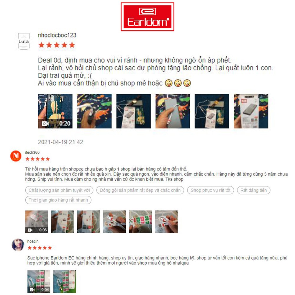 Giới thiệu Dây Sạc Iphone Lightning Earldom EC-082i Sạc Nhanh 2.4A Bọc TPE Cao Cấp