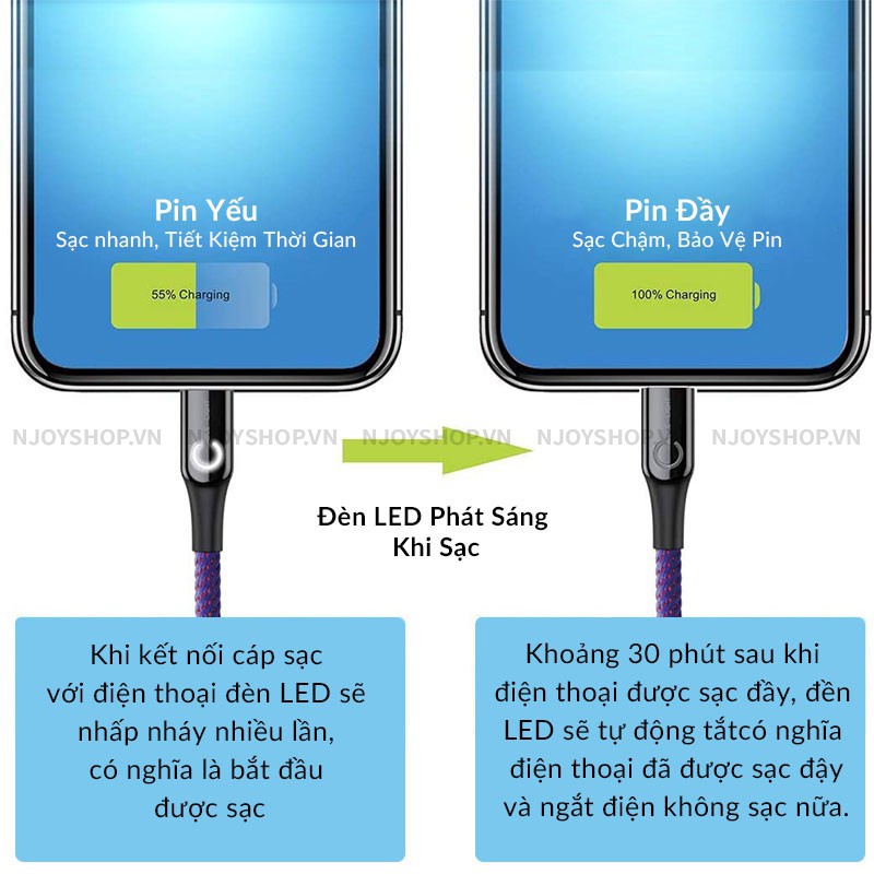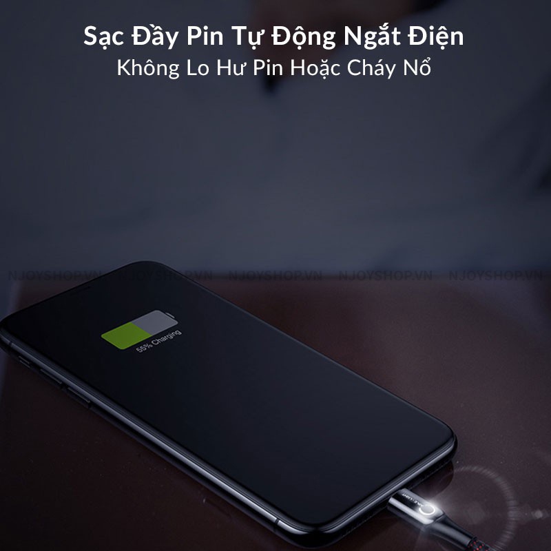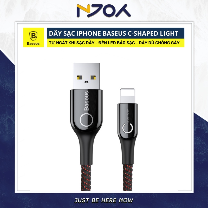 Giới thiệu Dây Sạc iPhone Tự Ngắt Chính Hãng BASEUS C Shape Light Lv345 Dây Dù 1M Chống Đứt Sạc Nhanh 2.4A