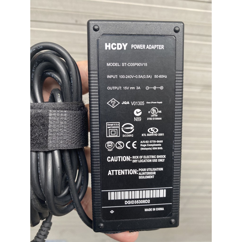 Sạc loa kéo 15v 3A có hình thức màu đen cầm rất nặng chắc tay (khác hoàn toàn so với sạc fake hàng linh kiện cầm rất nhẹ, lỏng lẻo)