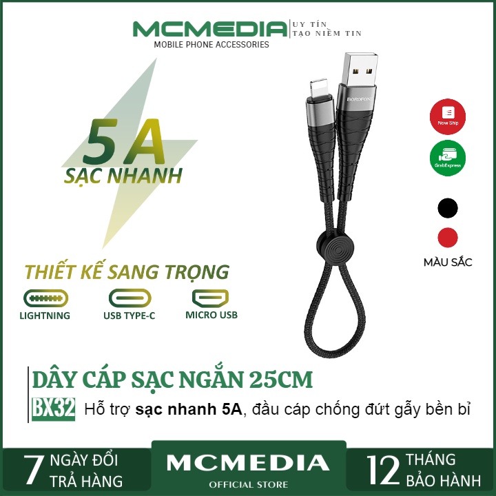- Dây cáp sạc ngắn BX32 25cm với thiết kế nhỏ gọn dễ dàng đem theo bất cứ đâu cùng độ bền cao và khả năng sạc nhanh, cáp sạc này sẽ đem đến cho bạn độ bền và tốc độ sạc tuyệt vời.