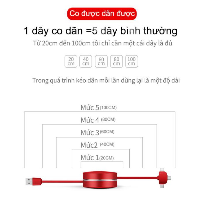 Dây sạc nhanh 3 trong 1 tránh dây bị xoắnTránh dây bị xoắn