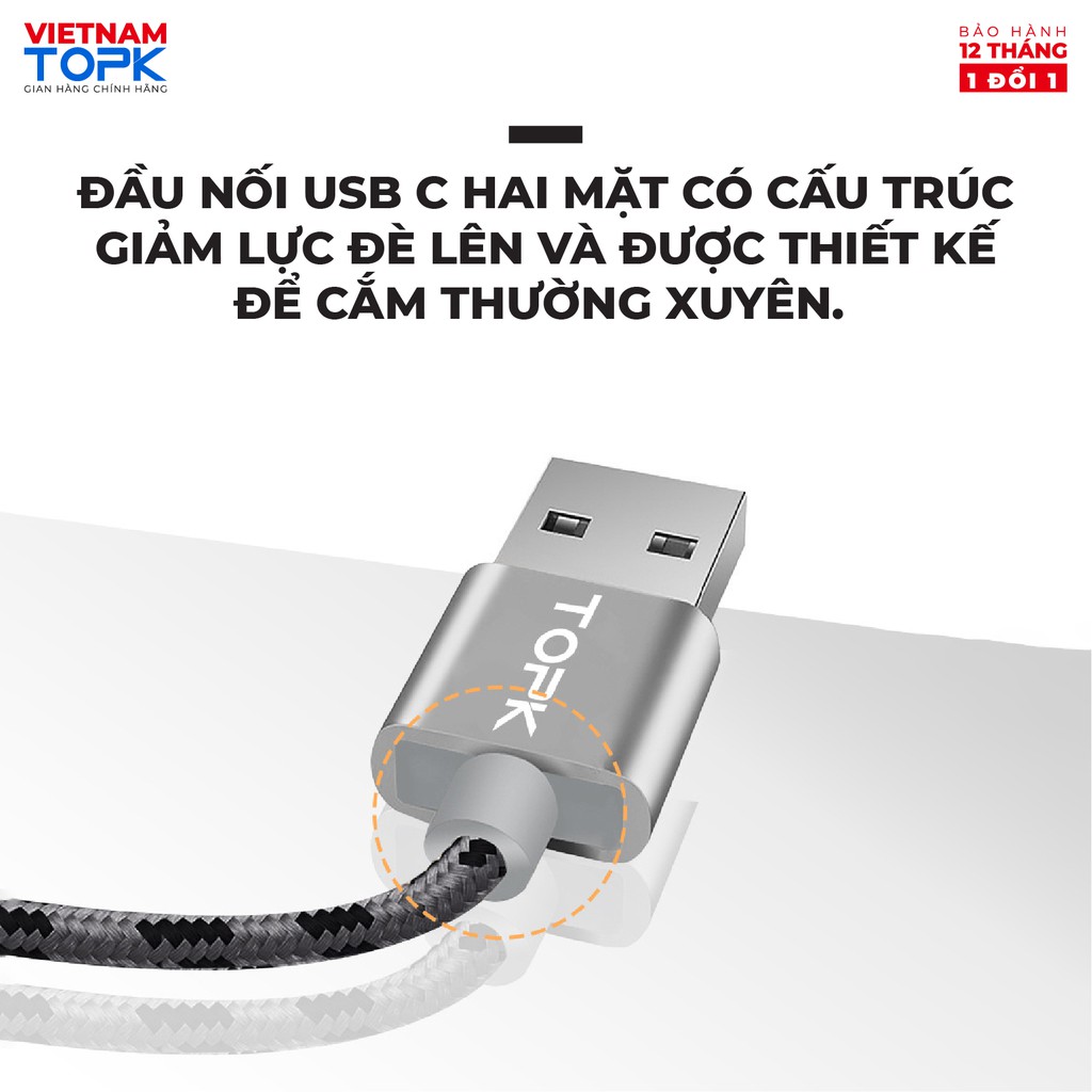 Giới thiệu Dây sạc nhanh 3A TOPK AN09 vỏ bện nylon dài 1m - Hàng chính hãng Bảo hành 12 tháng 1 đổi 1