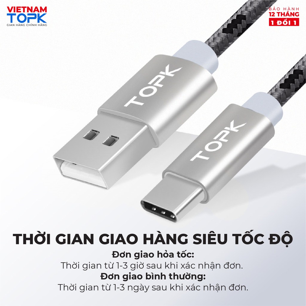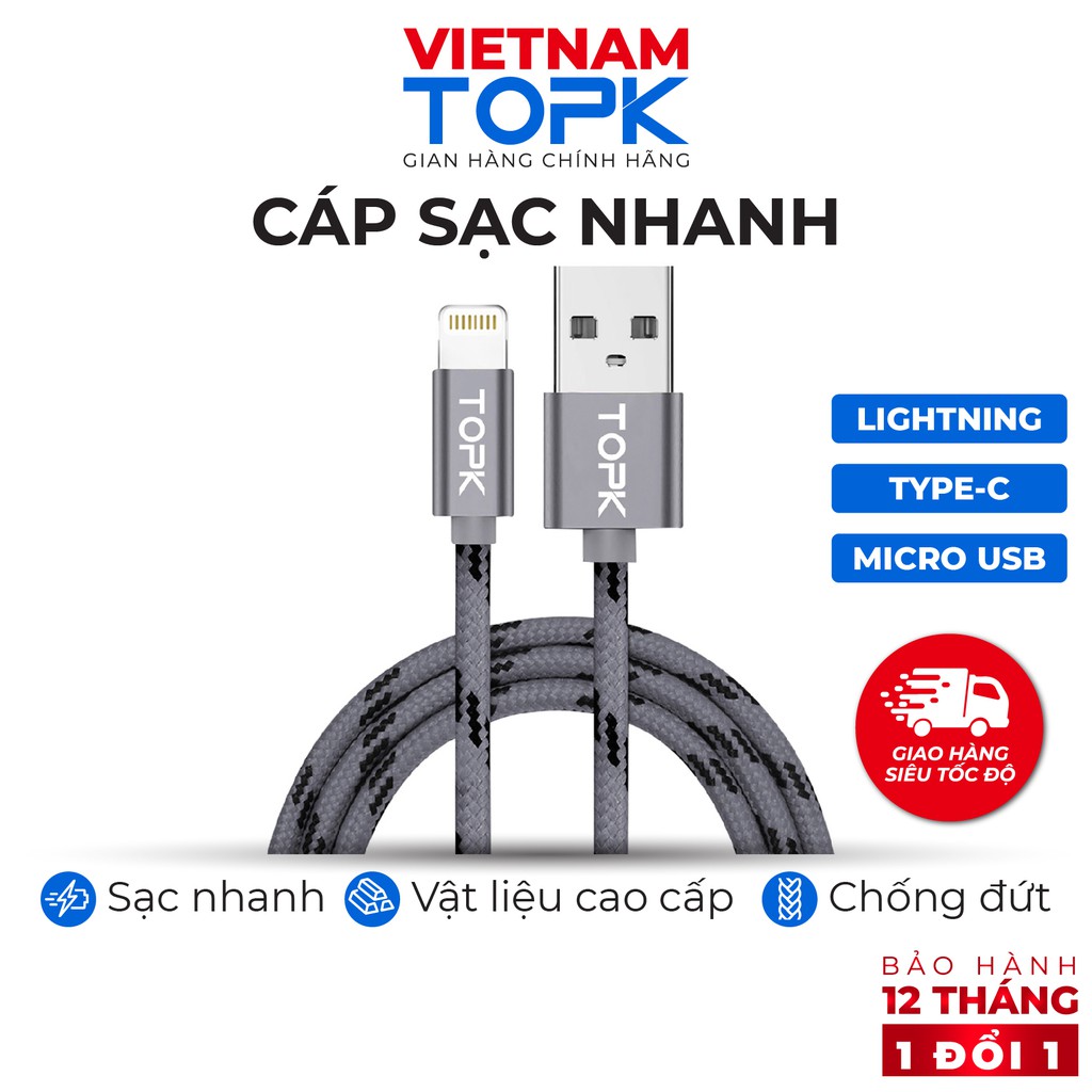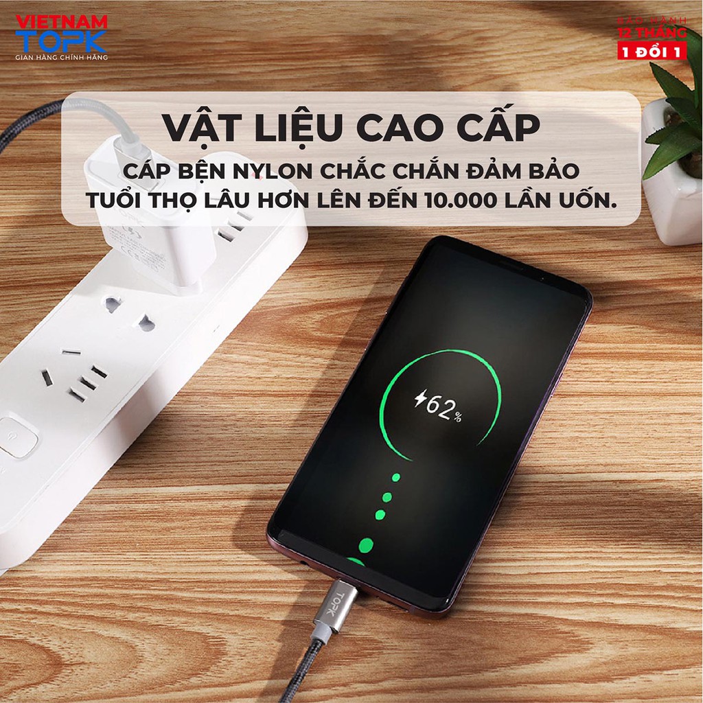 Điện Thoại & Phụ Kiện > Phụ kiện > Cáp, sạc & bộ chuyển đổi > Cáp & Bộ chuyển đổi di động || Dây sạc nhanh 3A TOPK AN09 vỏ bện nylon dài 1m - Hàng chính hãng Bảo hành 12 tháng 1 đổi 1Còn hàng