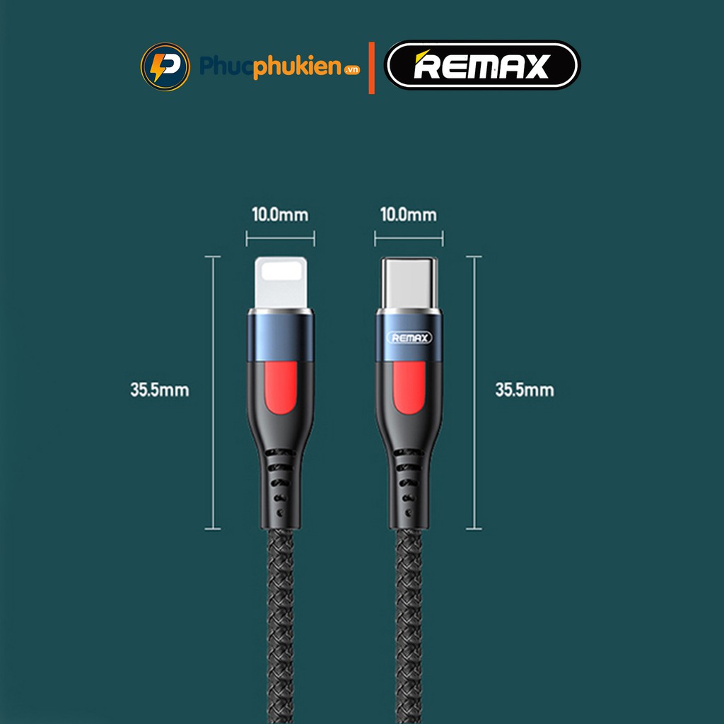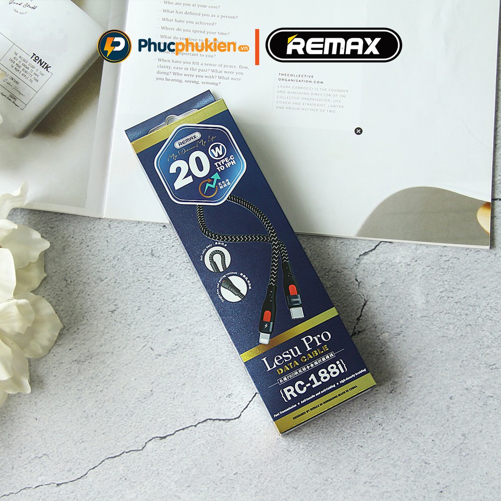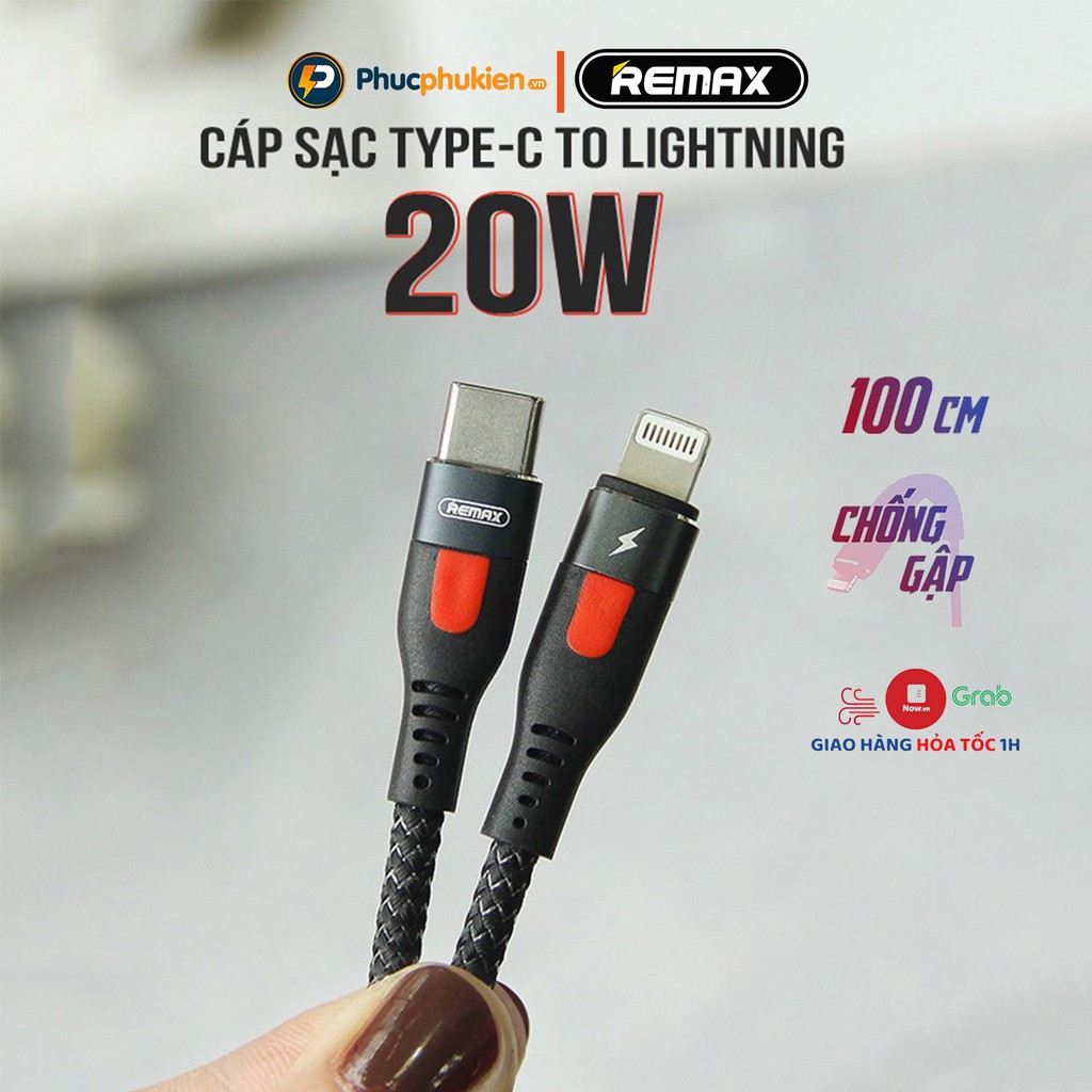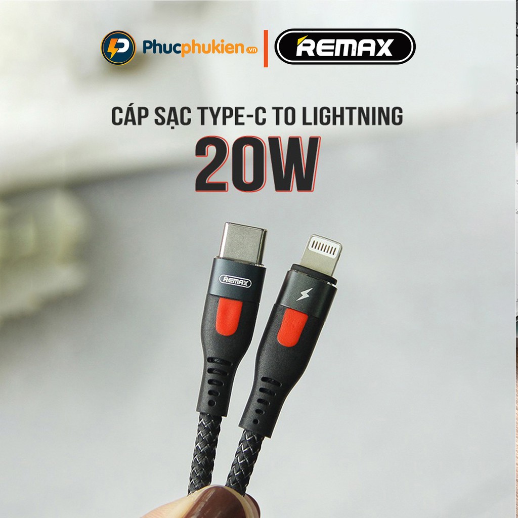 Dây sạc nhanh iPhone 20w chính hãng Remax 188i cáp type c to lightning sạc 50% pin chỉ 30 phút cho 8 Plus đến 13 Pro max