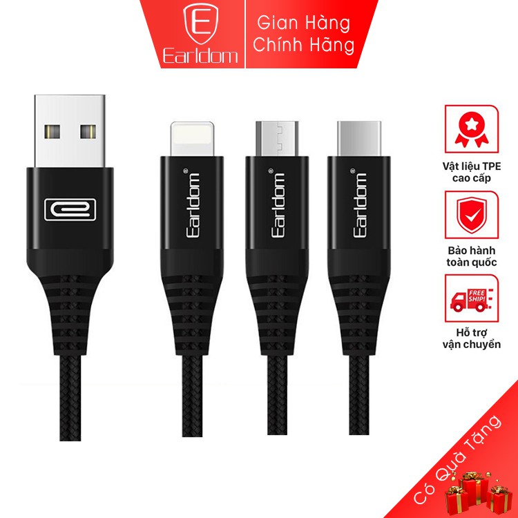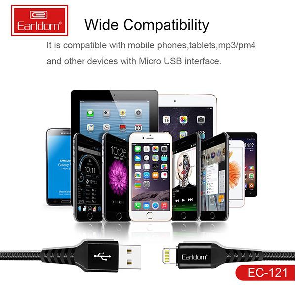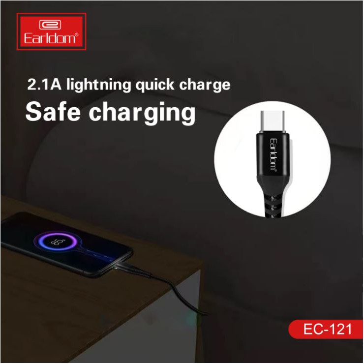 Dây sạc nhanh chính hãng Earldom EC-121 sạc nhanh 2.1A bọc dù chắc chắn đầu chống gẫy gập