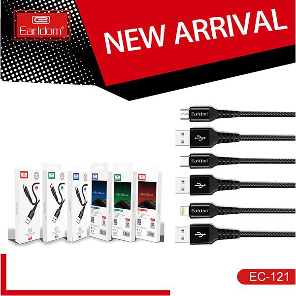 Điện Thoại & Phụ Kiện > Phụ kiện > Cáp, sạc & bộ chuyển đổi > Cáp & Bộ chuyển đổi di động || Dây sạc nhanh Iphone Samsung chính hãng Earldom EC-121 sạc nhanh 2.1A bọc dù chắc chắn đầu chống gẫy gậpCòn hàng
