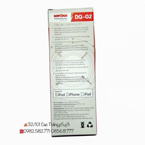 Dây sạc DQ- 02cho ios, thương hiệu Sopoka