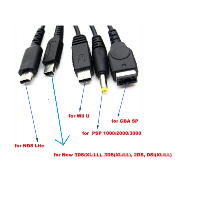 Dây Sạc USB 5 Trong 1 Máy Game 3DS DSl DSI PSP WII U