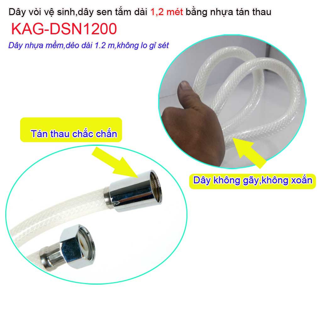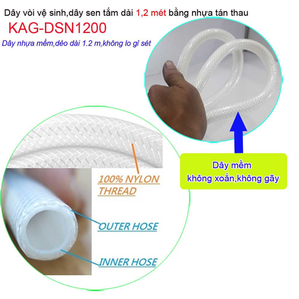 Dây sen cao cấp, dây vòi tắm hoa sen 1.2m, dây vòi xịt vệ sinh bằng nhựa KAG-DSN1200