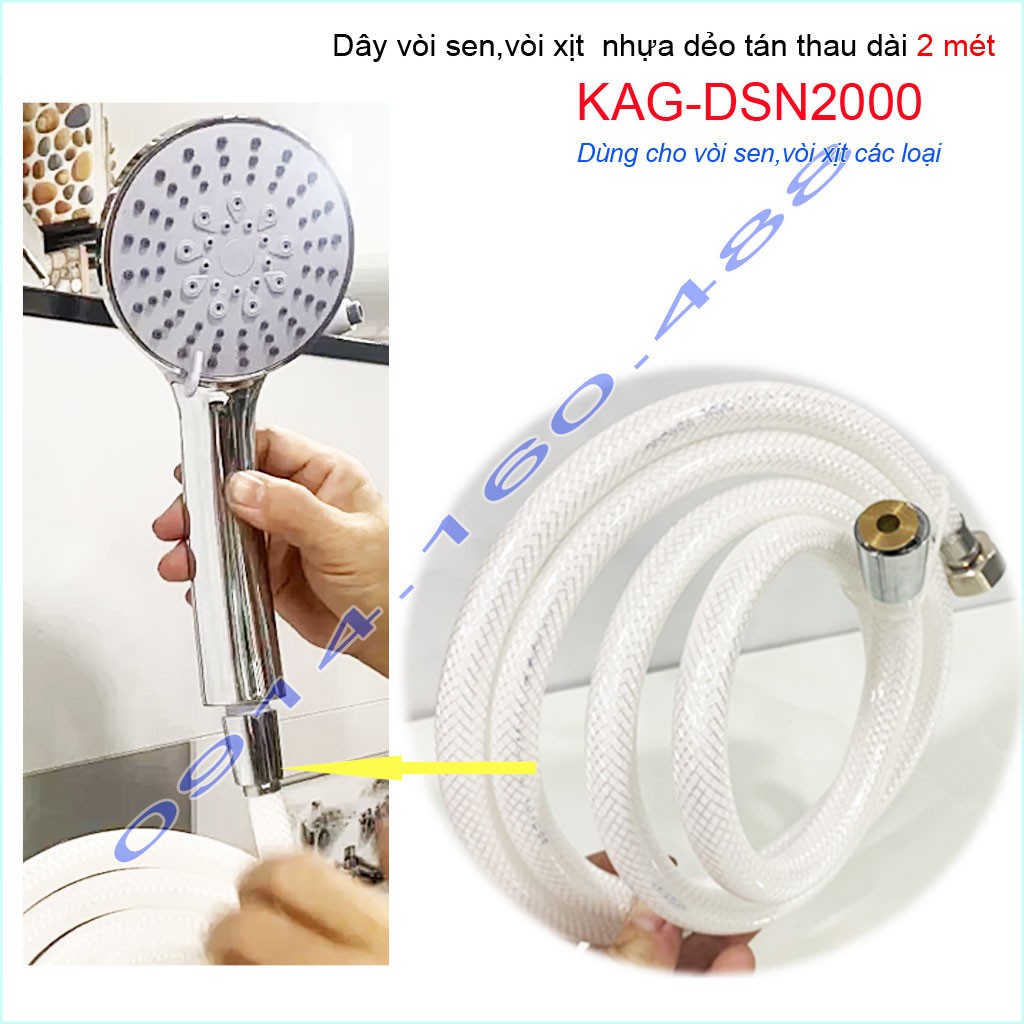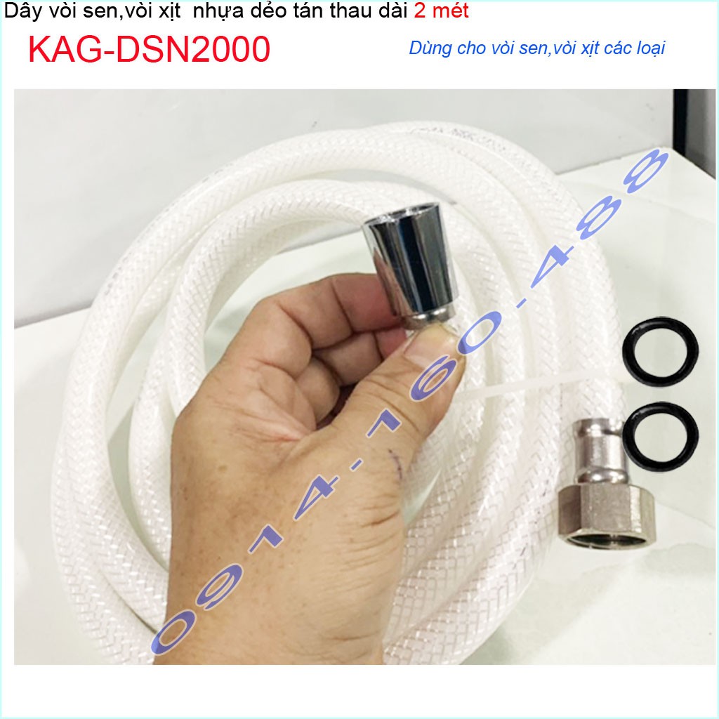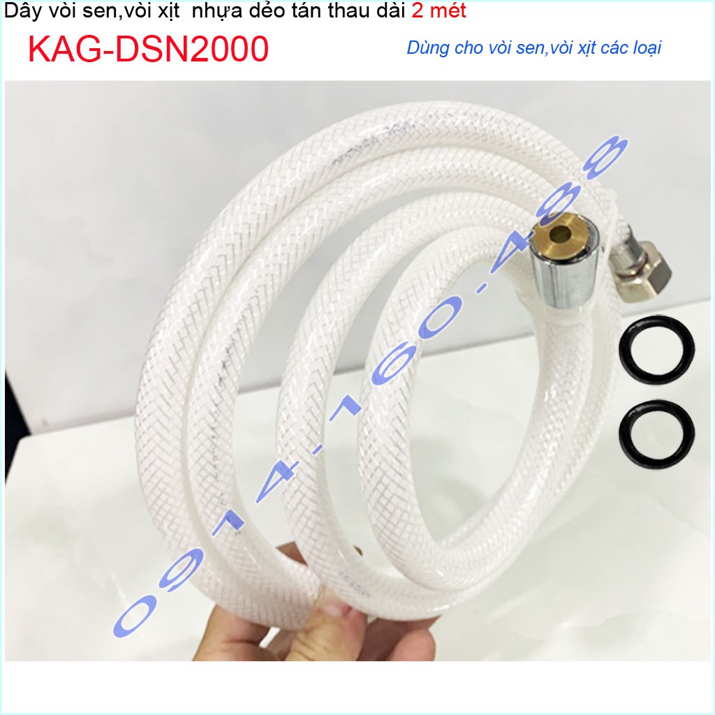 Dây sen nhựa KAG-DSN2000-2m cao cấp,dây dẫn nước vòi sen vòi xịt 2m dây bằng nhựa chịu áp lực tốt giá tốt sử dụng tốt