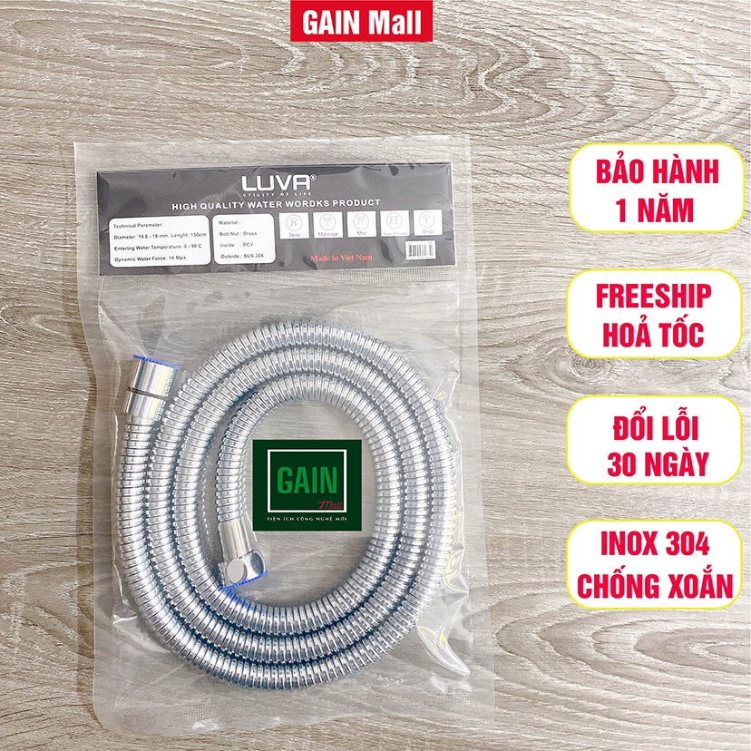 Giới thiệu Dây Sen Tắm Luva, inox 304 Dài 1.5m, BH 1 Năm, Đổi Lỗi 30 Ngày, Lõi Đồng, Chống Xoắn