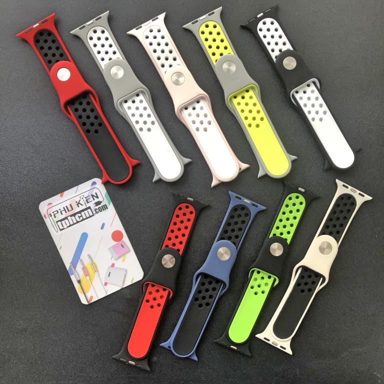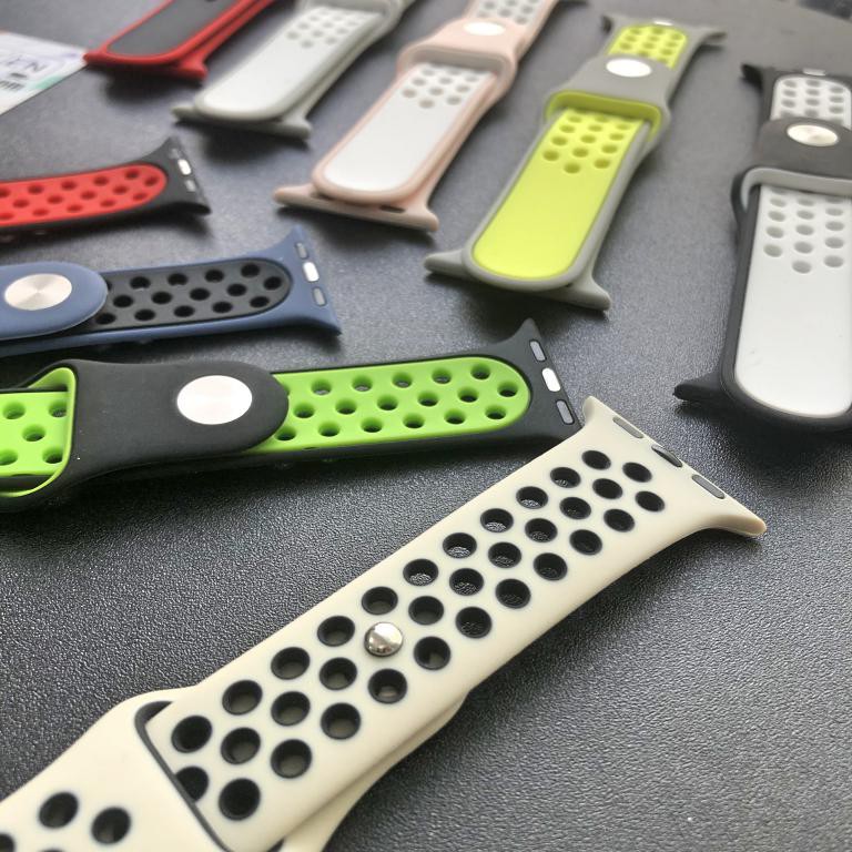 Dây Silicon Apple Watch Amazfit Bip - Apple Watch Edition 38mm - 40mm sử dụng vẫn sử dụng chất liệu silicone khá quen thuộc. Chất liệu này sẽ cho cảm giác dễ chịu khi đeo đặc biệt thích hợp với các hoạt động thể thao. Cảm giác đeo tay chắc chắn tương tự như dây Apple watch. Thân dây được tạo điểm nhấn bởi các lỗ tròn có viền màu đối lập, màu sắc khá tương phản giúp chiếc vòng trở nên nổi bật và thể thao hơn. Phong cách thiết kế học hỏi từ dây apple watch Nike Edition.