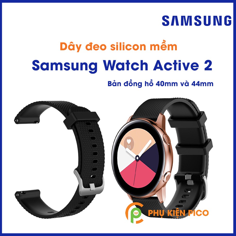 - Dây đồng hồ Samsung Galaxy Watch Active 2 được làm bằng chất liệu Silicon cao cấp, không bong tróc.