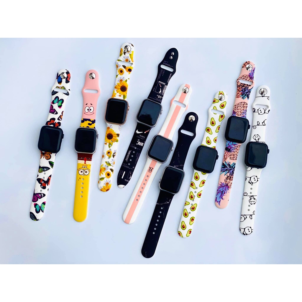 Dây silicon hoạ tiết cho Apple Watch đồng hồ thông minh iWatch Series1/2/3/4/5/6/7/SE size 38mm 40mm 41mm 42mm 44mm 45mm