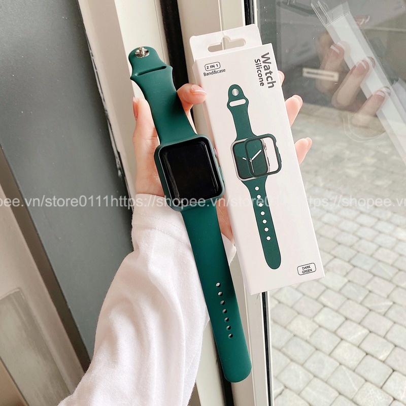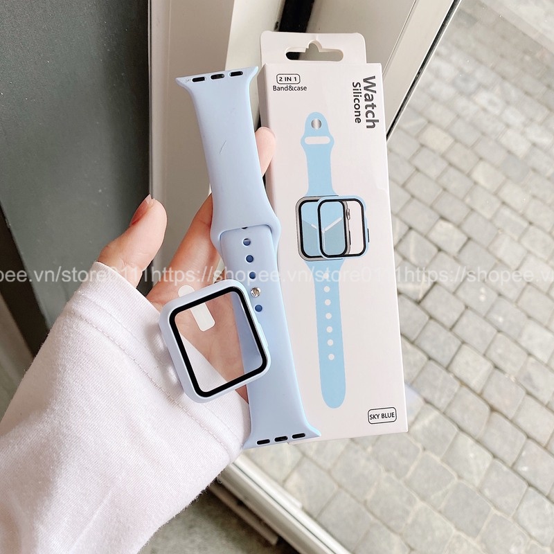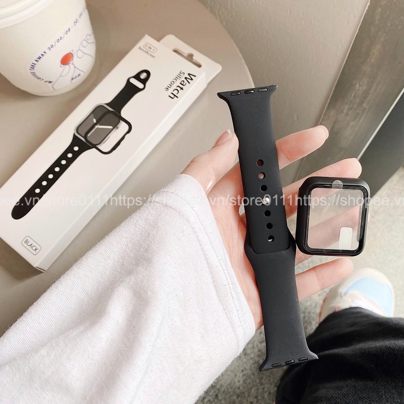 Dây silicon + Ốp kèm kính cường lực dành cho Apple watch 38mm/40mm/41mm/42mm/44mm/45mm