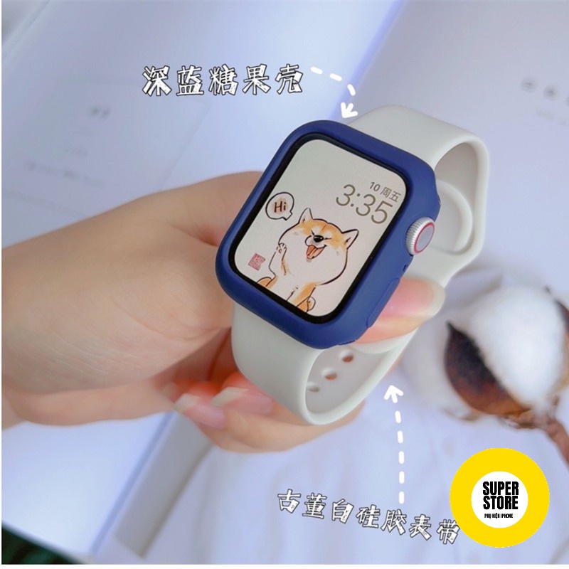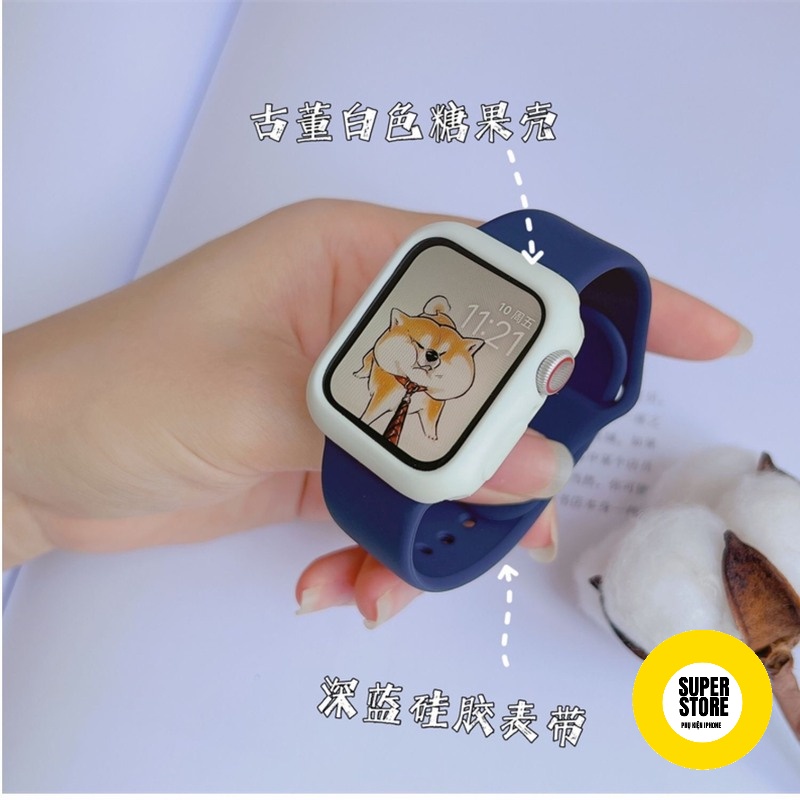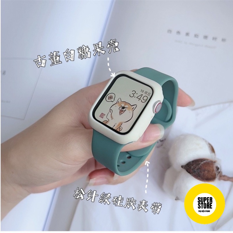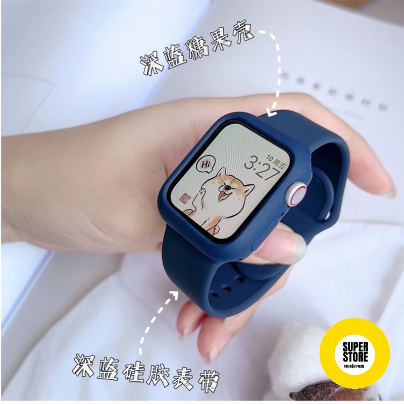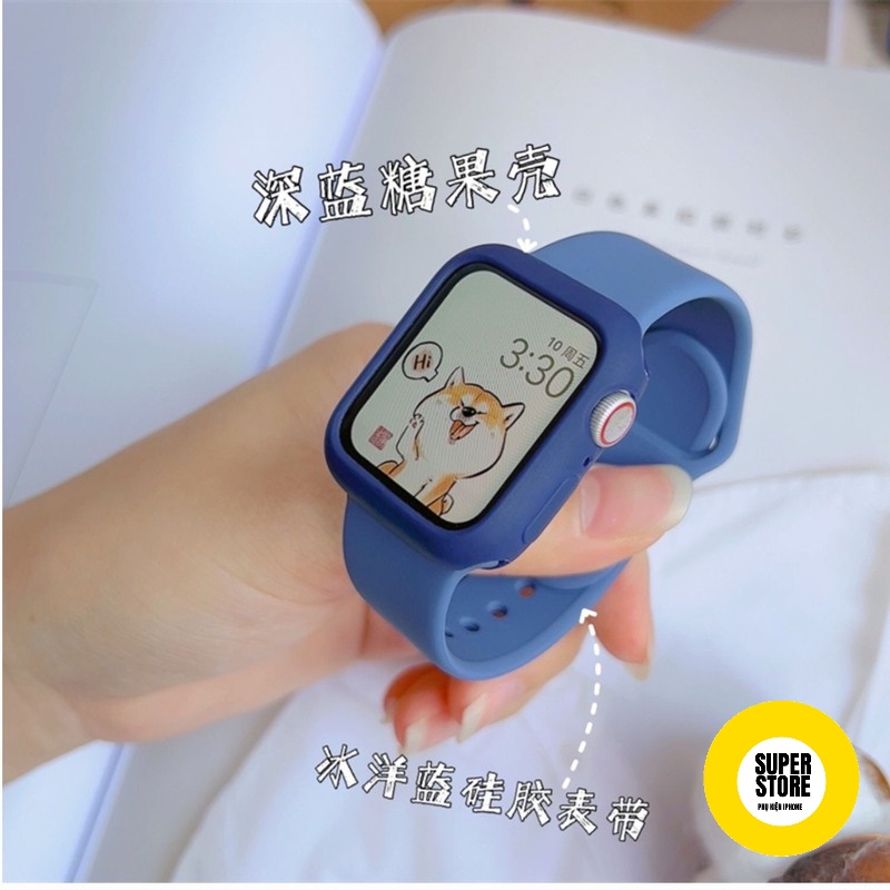 Dây silicon + Ốp kèm KÍNH CƯỜNG LỰC phối màu đẹp dành cho đồng hồ thông minh Apple Watch iWatch Series 7 6 SE 5 4 3 2 1