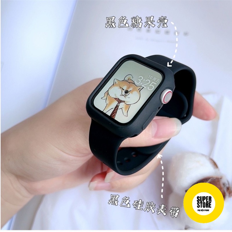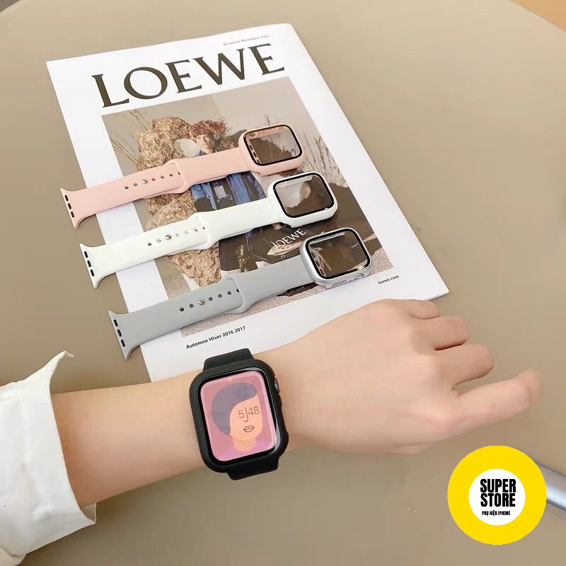 Giới thiệu Dây silicon + Ốp kèm KÍNH CƯỜNG LỰC phối màu đẹp dành cho đồng hồ thông minh Apple Watch iWatch Series 7 6 SE 5 4 3 2 1