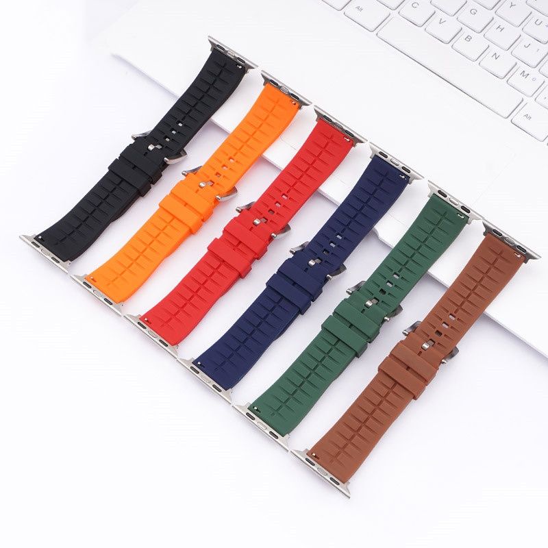 Dây Silicon thời trang tiện lợi cao cấp cho Apple watch Serie 4, 5, 6, và Apple Watch serie 7Chất liệu dây đồng hồ: Silicon