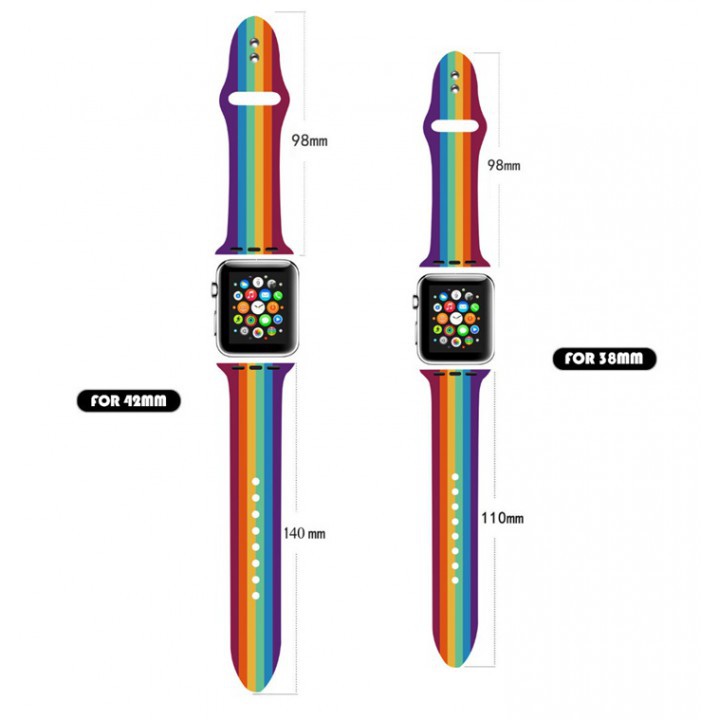 Dây Silicone Apple Watch 7 Sắc Cầu Vồng 38mm - 40mm - 42mm - 44mmDây đeo cao su Apple Watch cầu vòng 7 màu, size 38/40mm 42/44mm