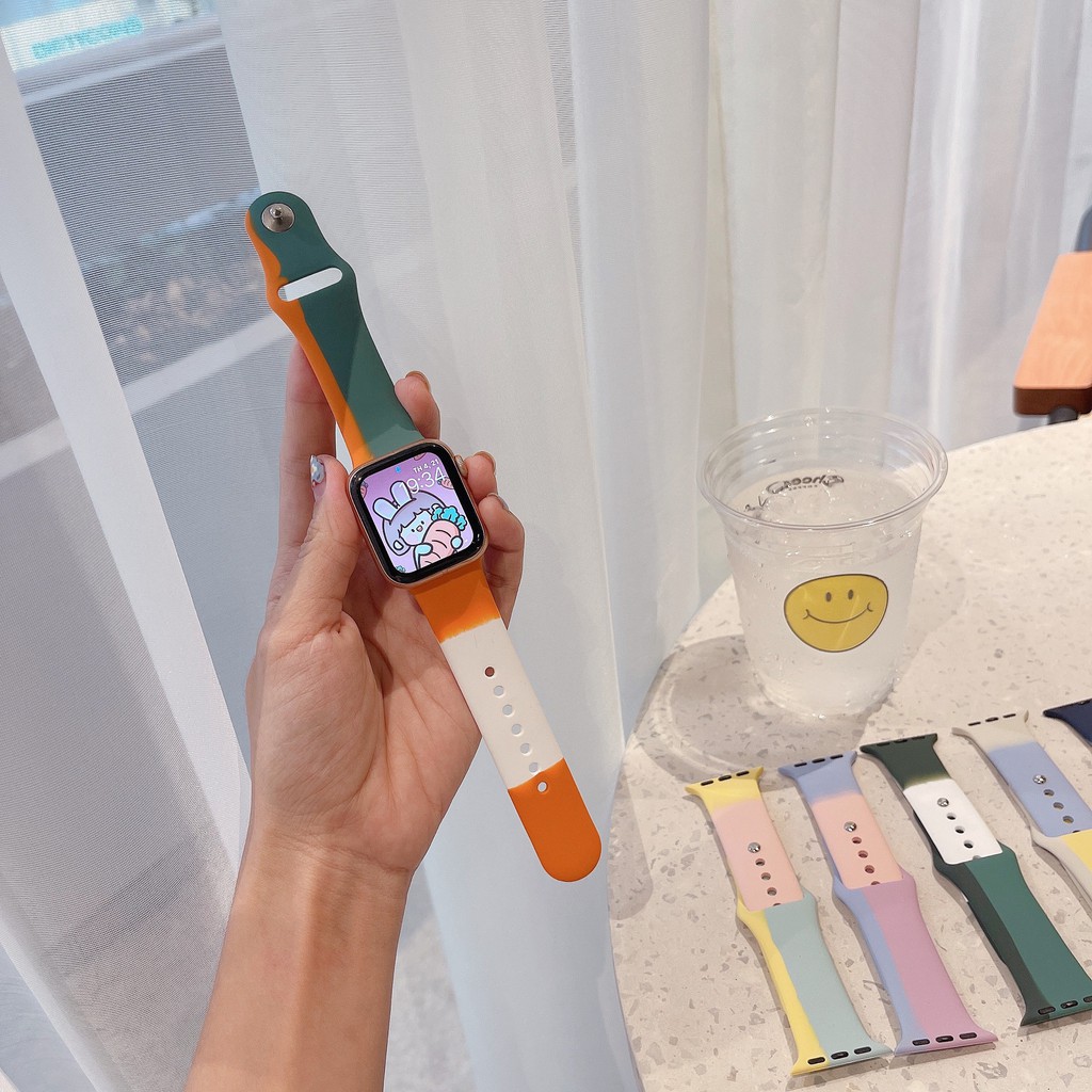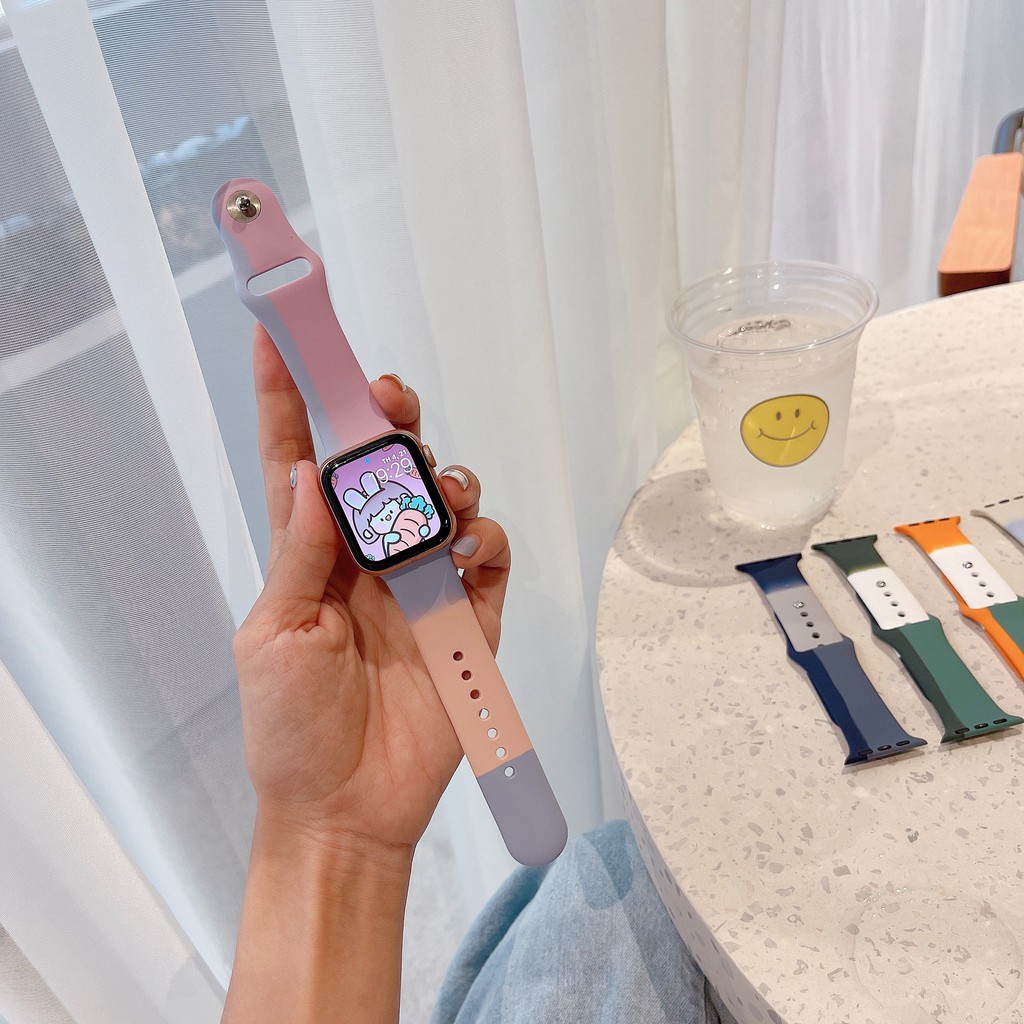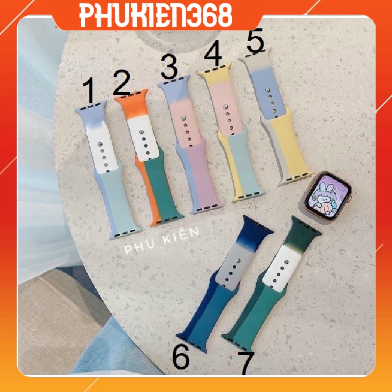 Dây silicone đồng hồ thông minh Apple Watch phối màu đủ series 6/5/4/3/2