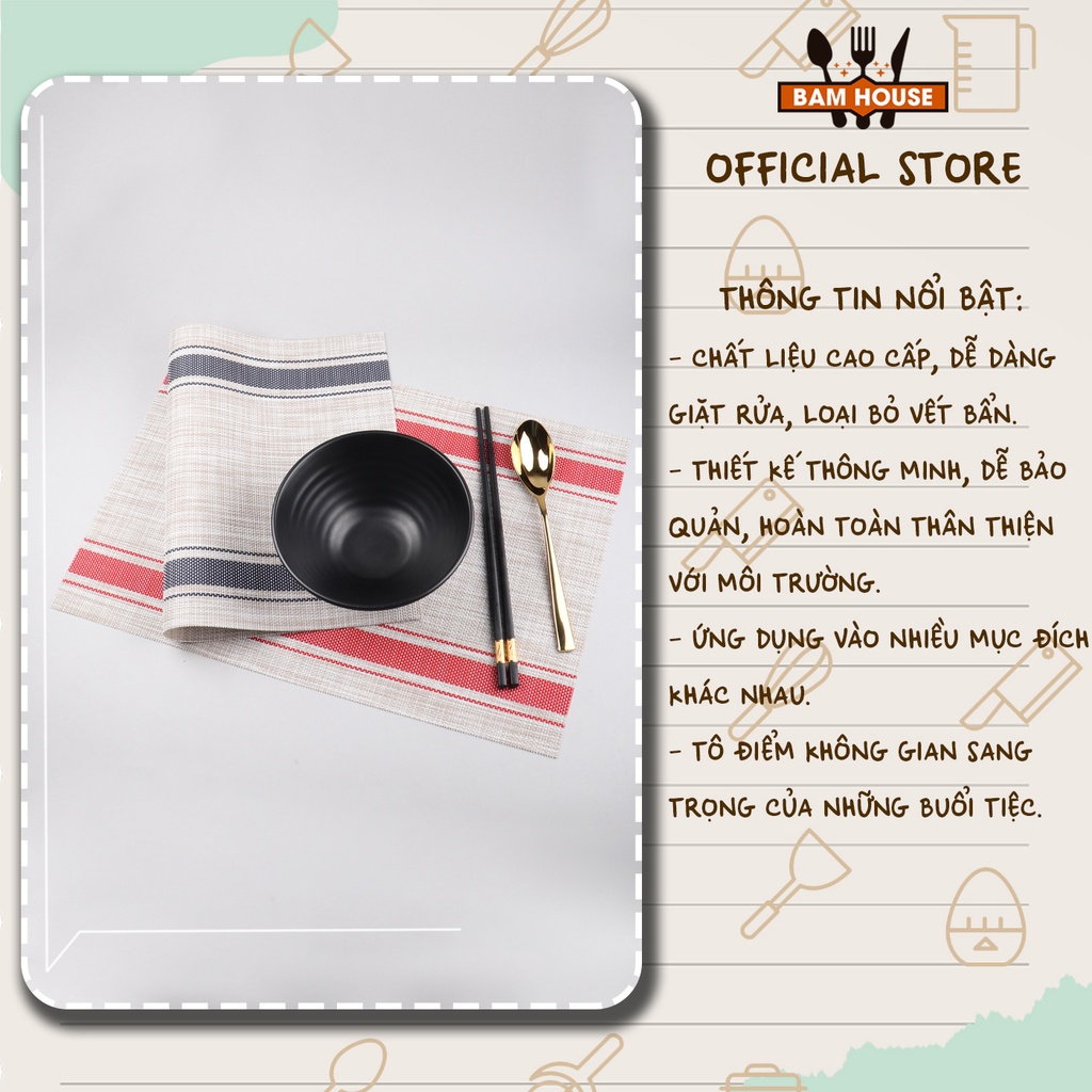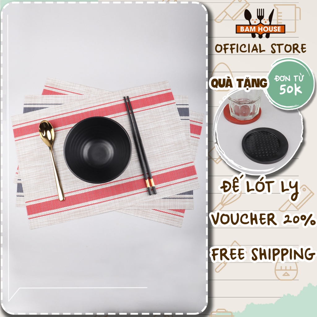 Nhà cửa & Đời sống > Bộ đồ bàn ăn > Khay, tấm lót bàn ăn || [ Loại dày ] Tấm lót bàn ăn nhà hàng thiết kế kẻ sọc Bam House chất liệu PVC chống trượt và chống nhăn cao cấp TLKS02Còn hàng