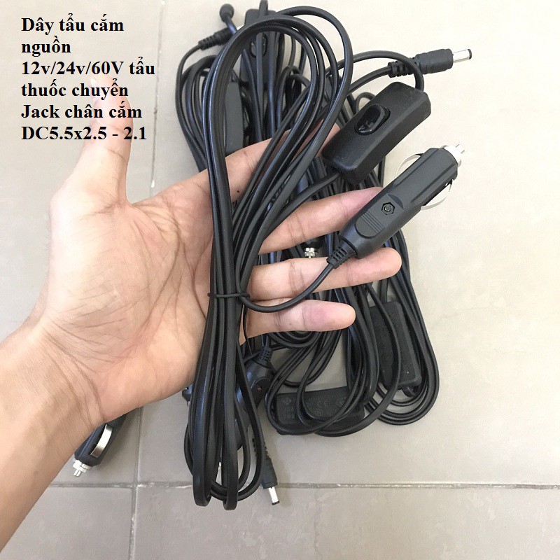 Nhà cửa & Đời sống > Dụng cụ & Thiết bị tiện ích > Máy bơm nước & phụ kiện || Dây tẩu cắm nguồn 12v/24v/60V tẩu thuốc chuyển Jack chân cắm DC5.5x2.5 - Dây cáp sạc trên Ô tôCòn hàng