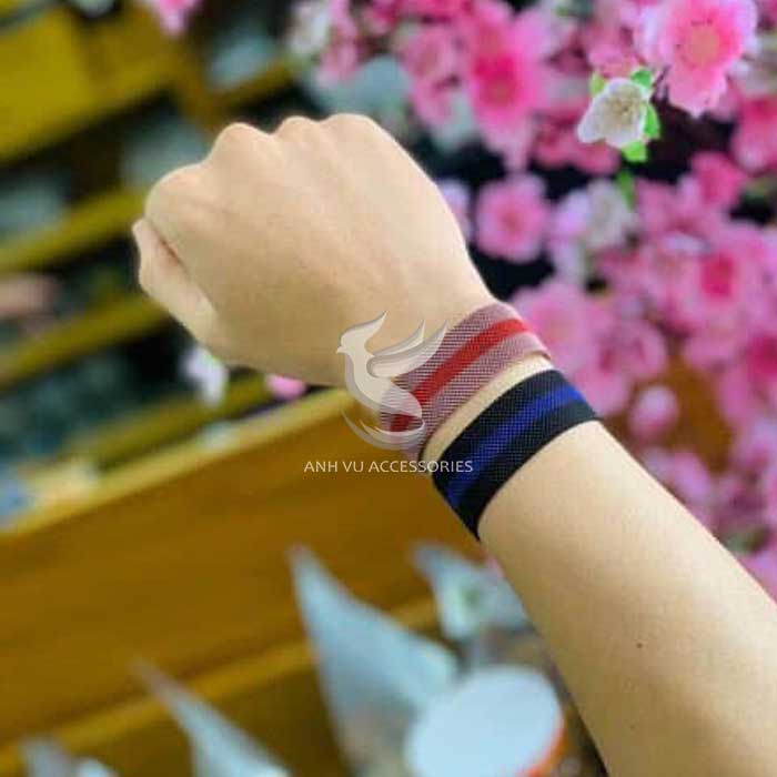 ✔️ Chất liệu thép Milan không gỉ, bền bỉ, khít tay hơn dây cao su, thoáng khí, không giữ mồ hôi.